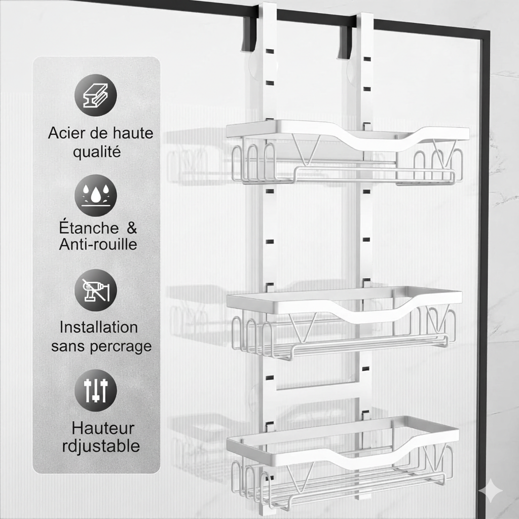 Essayez l'étagère sans risque pendant 30 jours. Si le rangement ne simplifie pas vos douches ou ne protège pas votre porte vitrée, retour complet et remboursement rapide. Achetez sereinement et transformez votre routine quotidienne.