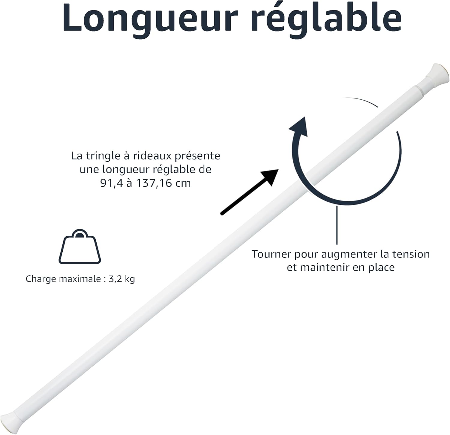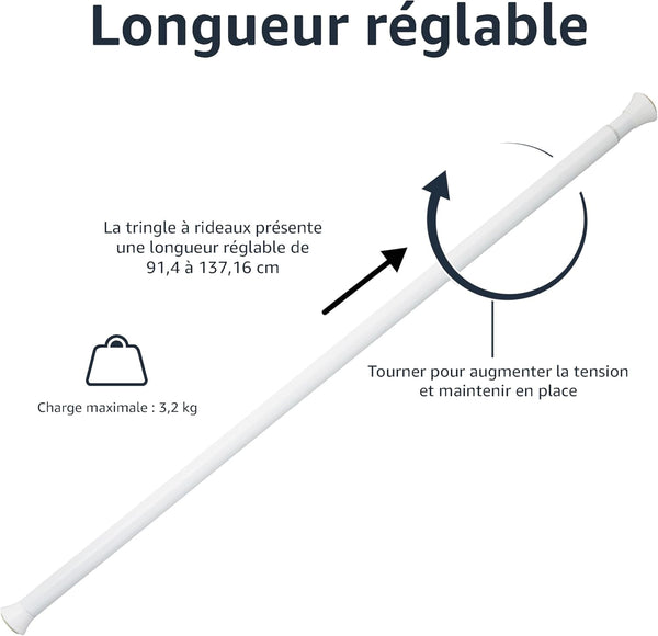 La tringle est réglable et couvre une plage de longueurs courantes. Vérifiez vos dimensions et ajustez simplement en tournant pour obtenir l’ajustement parfait.