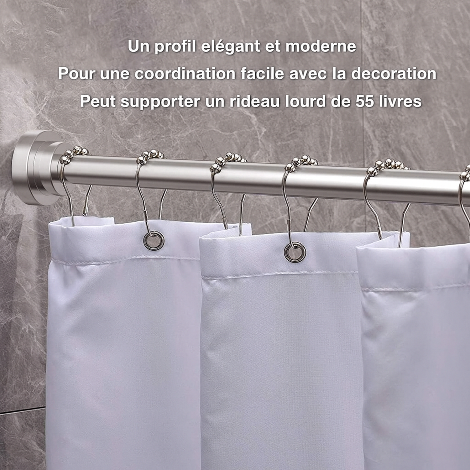 Le ressort puissant et l'acier inoxydable permettent de supporter des rideaux lourds et accessoires. Convient aux serviettes et rideaux épais sans glissement.