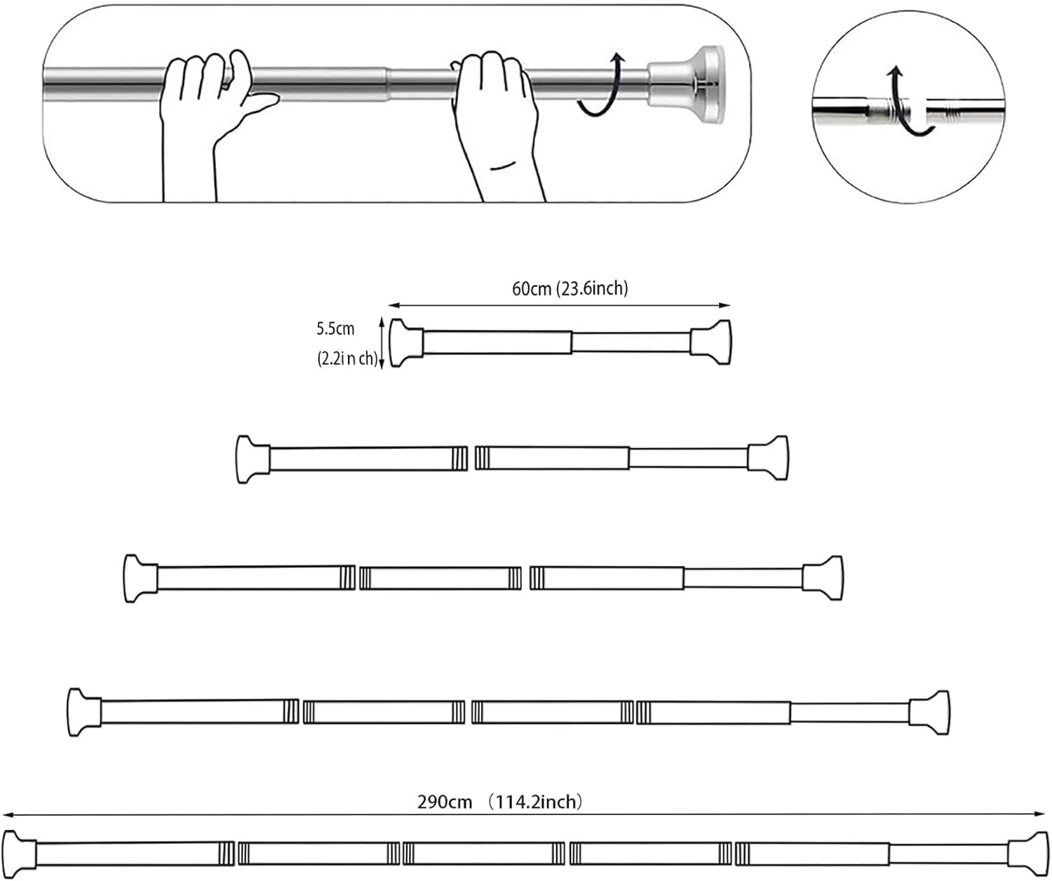 Réglez la longueur entre 70 et 120 cm en un geste. La barre extensible en acier inoxydable s'adapte à toutes les configurations, idéale pour rénovations rapides sans outils.