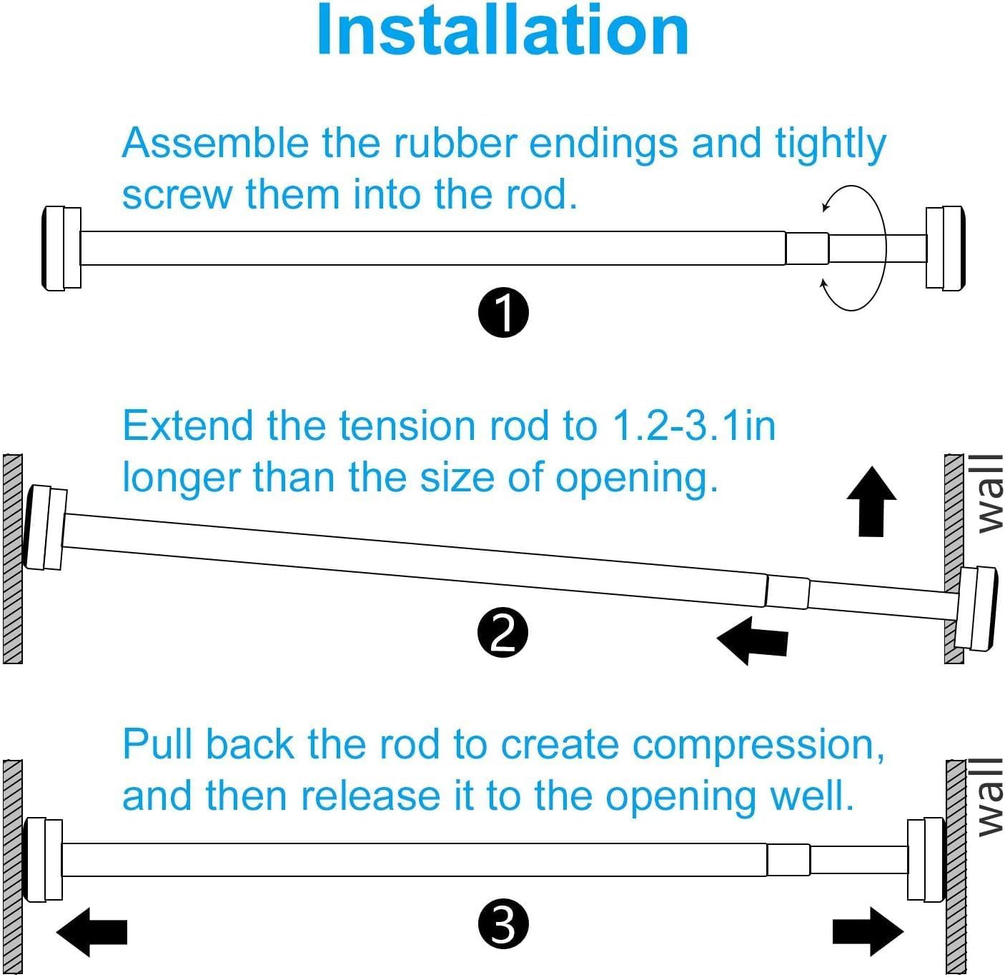 La tringle télescopique sans perçage empêche la chute du rideau. Installation rapide, pieds antidérapants garantissent une tenue sur carrelage lisse et plus de soucis pendant la douche.